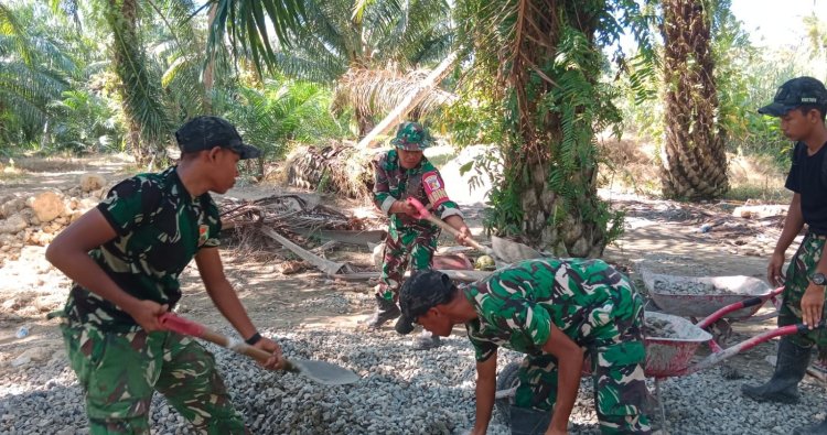 Babinsa Koramil 1427-01/Pasangkayu, Sertu Fahril, menyampaikan bahwa kegiatan difokuskan pada pengedropan material batu ciping di titik pekerjaan.