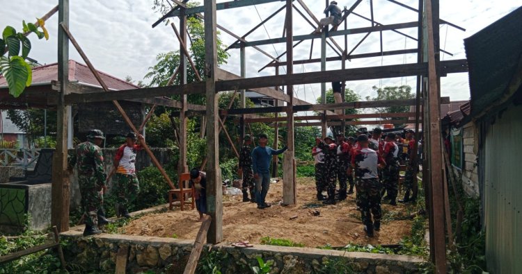 Pasangkayu, - Jajaran TNI dari Kodim 1427/Pasangkayu melalui Koramil 1427-01/Pasangkayu melaksanakan karya bakti pembangunan asrama putra Pondok Pesantren Imam Al-Asy’ari DDI Pasangkayu, di Jalan Camar, Lingkungan Labuang, Kelurahan Pasangkayu, Minggu (19/4).